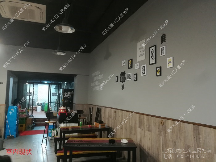 特别提示:据重庆创毅拍卖有限公司现场了解到,该拍卖标的物位于重庆市巴南区渝南大道299号附7号2-46门面房屋(万达广场),据不动产权证[(渝2016)巴南区不动产权第000116381]显示:建筑面积约104.53㎡,套内面积:76.50㎡(请竞买人自行了解),本次拍卖的标的物系出租使用,用于经营《云南私房小肉串》,根据《门面出租合同》约定,在租赁期限内,物业管理、水、电费用等由承租人承担,截至2019年12月止,物业服务费共欠1296.18元,请竞买人自行了解。若有其他欠费由买受人承担,以交付时实际金额为准,本次拍卖标的未注明的费用及欠费等由买受人承担。